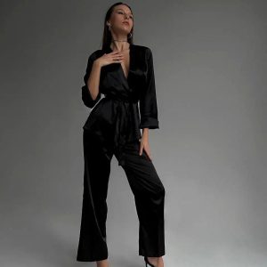 ELEGANCE 2 Piece Luxurious Satin Lounge Set – Black
