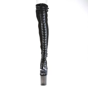 FLAMINGO-3027 Black & Red Thigh High Peep Toe Boots