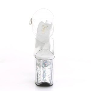 FLAMINGO-808GF Silver & Clear Ankle Peep Toe High Heel