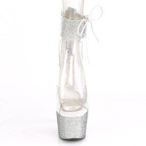 BEJEWELED-812RS Clear & Silver Ankle Peep Toe High Heel