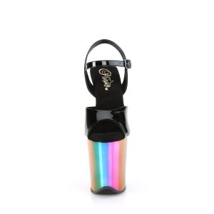RAINBOW-309UV Black & Multi Colour Ankle Peep Toe High Heel