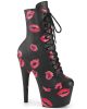 Get a Step Up in Style with the ADORE-1020KISSES Lace-Up Lips Print Ankle Boot