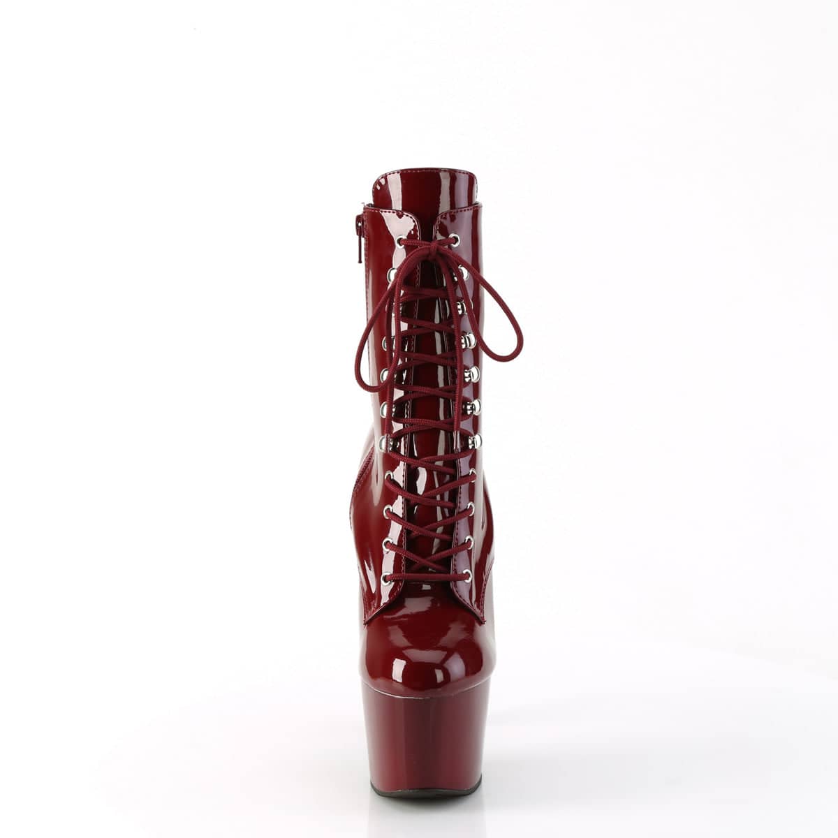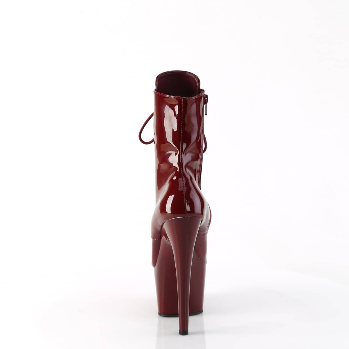 More than a wine type, burgundy is the elegant and sexy color of these ankle platform boots from our Adore range. Glazed in reddish patent and raised 7” high on top of 2 ¾” platforms, you’ll be looking finer than a glass of wine no matter what place you step into. Simply lace up the front, zip up the side, and you’re ready for struttin’!