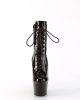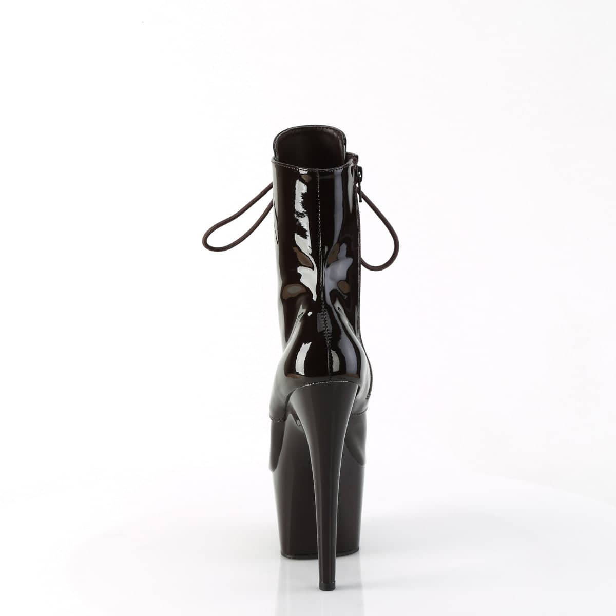 We Adore coffee, and apparently so does Pleaser with these lace-up platform ankle boots from the Adore line! Shining bright with dark brown patent like a morning espresso, these boots are 7” off the ground with their heels and down to earth with their 2 ¾” platforms. Adjustable laces up front and a zipper on the side is all you need to check before going for a coffee run in these coffee-colored platforms!