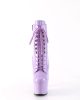 Lovely in lavender are Adore’s very own ankle-high platform boots. Feminine and frosted in shiny lavender patent, these boots have 7” heels and 2 ¾” high platforms for a delicate height boost. Fully complete with purple laces on the front and a zipper on the side, these platforms are ready for the party or the pastel fantasy!