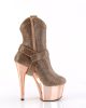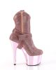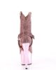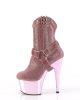 Who says real cowboys don’t wear pink? These Adore ankle boots put the ‘wild’ in the ‘wild west’ with a baby pink rhinestone design on top of chrome-plated 7” heels and 2 ¾” platforms. Their cowgirl shoe design also includes side zippers and detachable O-ring straps for a look you can wear to the saloon or local watering hole!