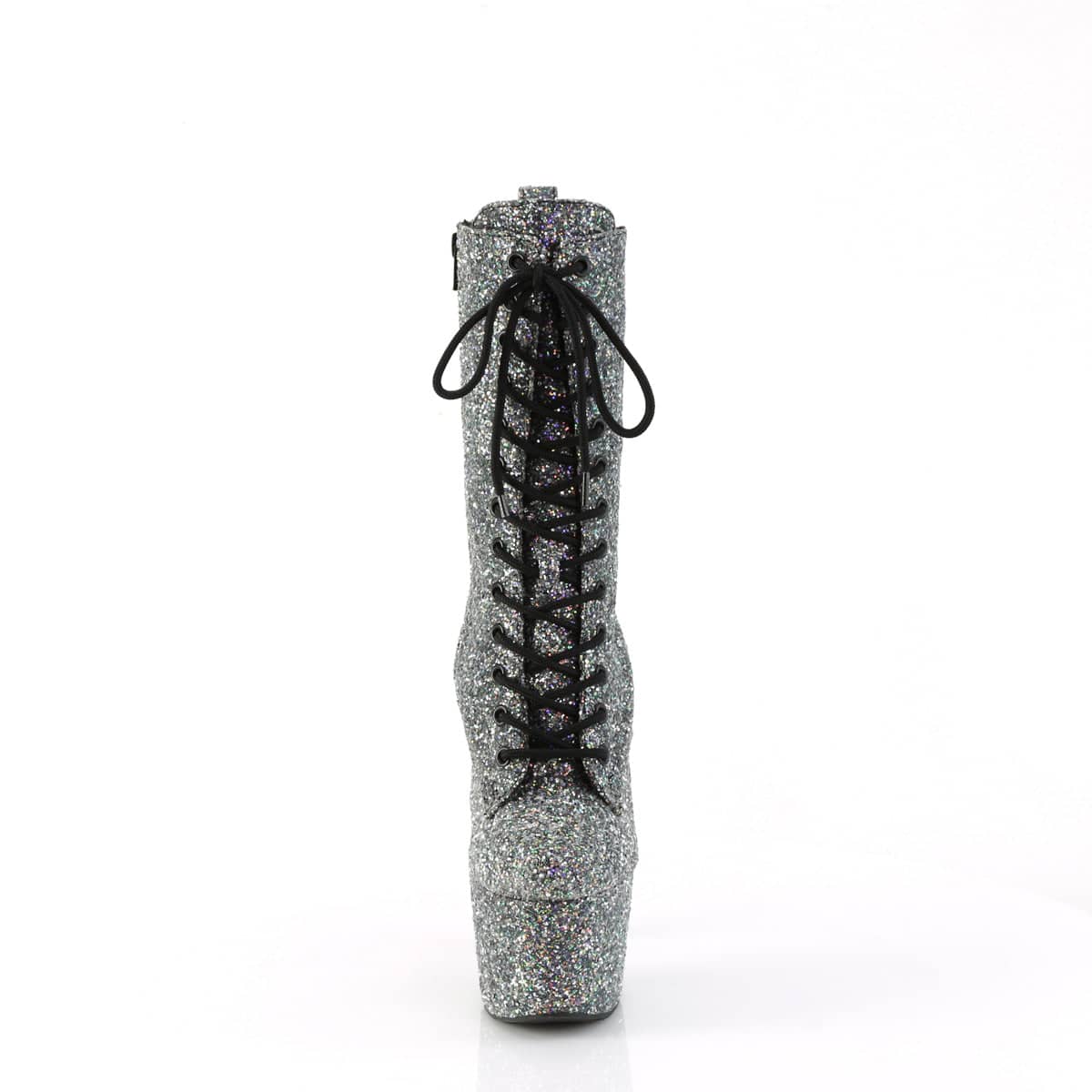 This Pleaser boot features unique design elements that demand attention. From a glitter and two-tone finish to its embellished lace-up front, these boots are perfect for those who wish to stand out in a crowd. Encapsulating styles of Platforms, High Heel, and Boots – this shoe offers the perfect blend of edge and elegance.