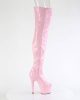 Embrace your inner babe inĀ our pink thigh high boots with peep toe.