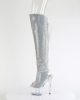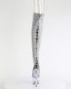 Strut in style and glamour, confidently donning the dazzling ADORE-3019C-RS Silver Rhinestone Platform Thigh High Peep Toe Boots. Beautifully crafted by the reputable Pleaser, these boots are unmatchable in their grandeur and allure.
