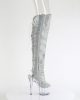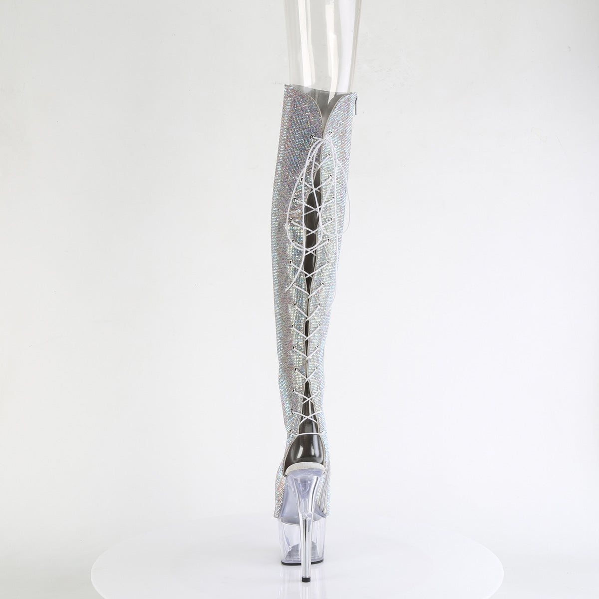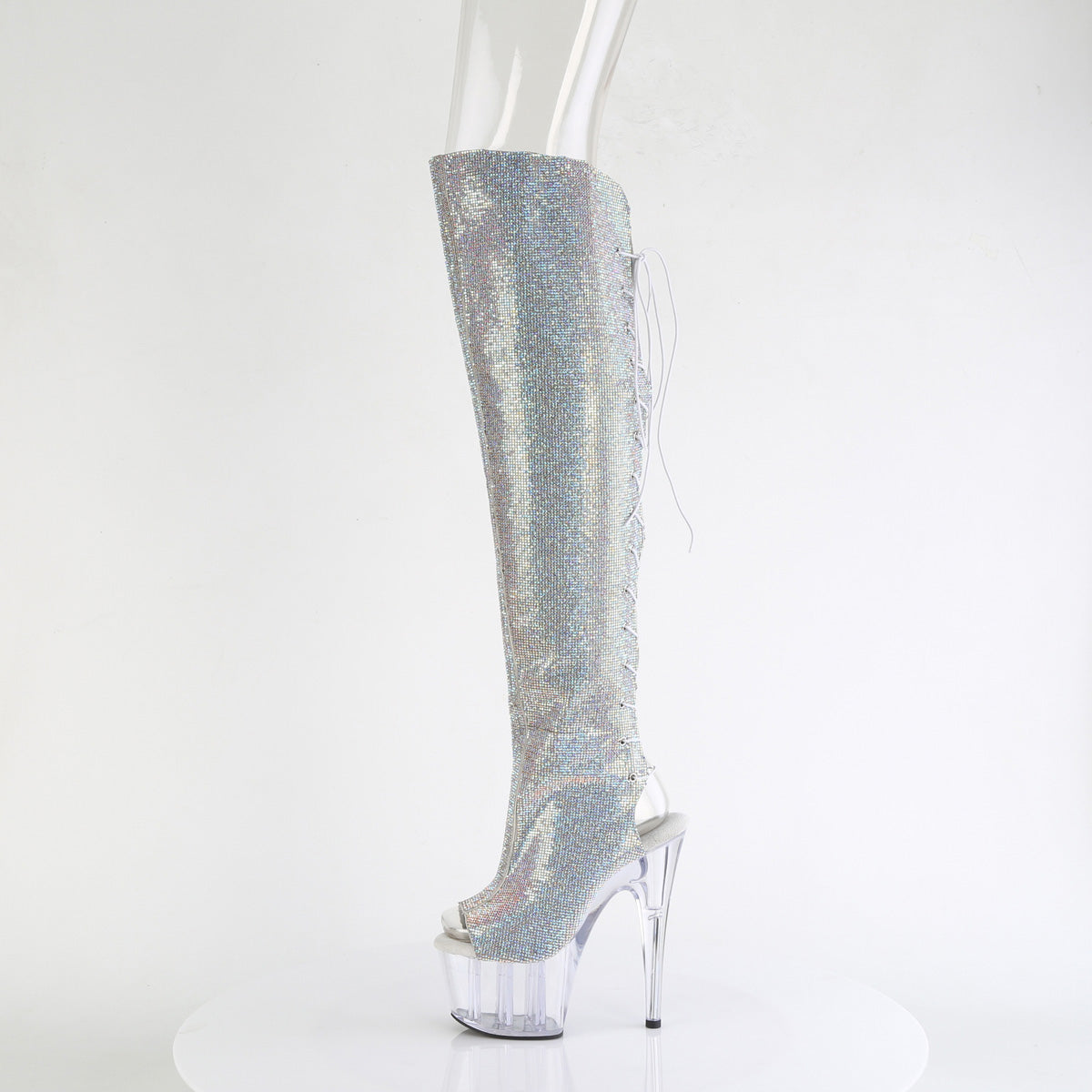 Enter the Room with Shine with ADORE-3019C-RS Silver Rhinestone Platform Thigh High Peep Toe Boots