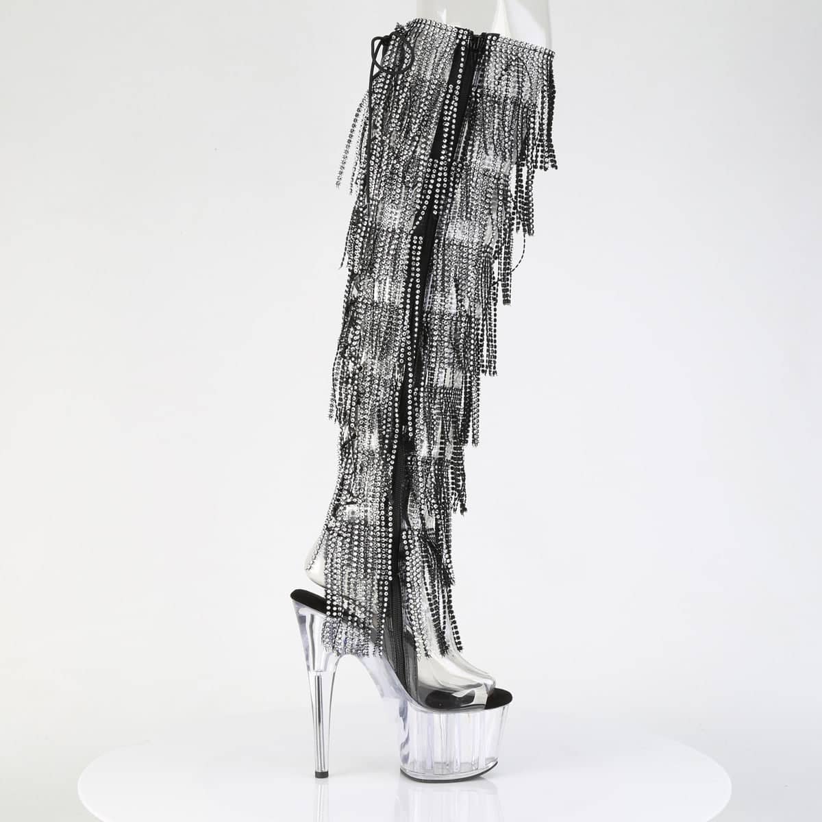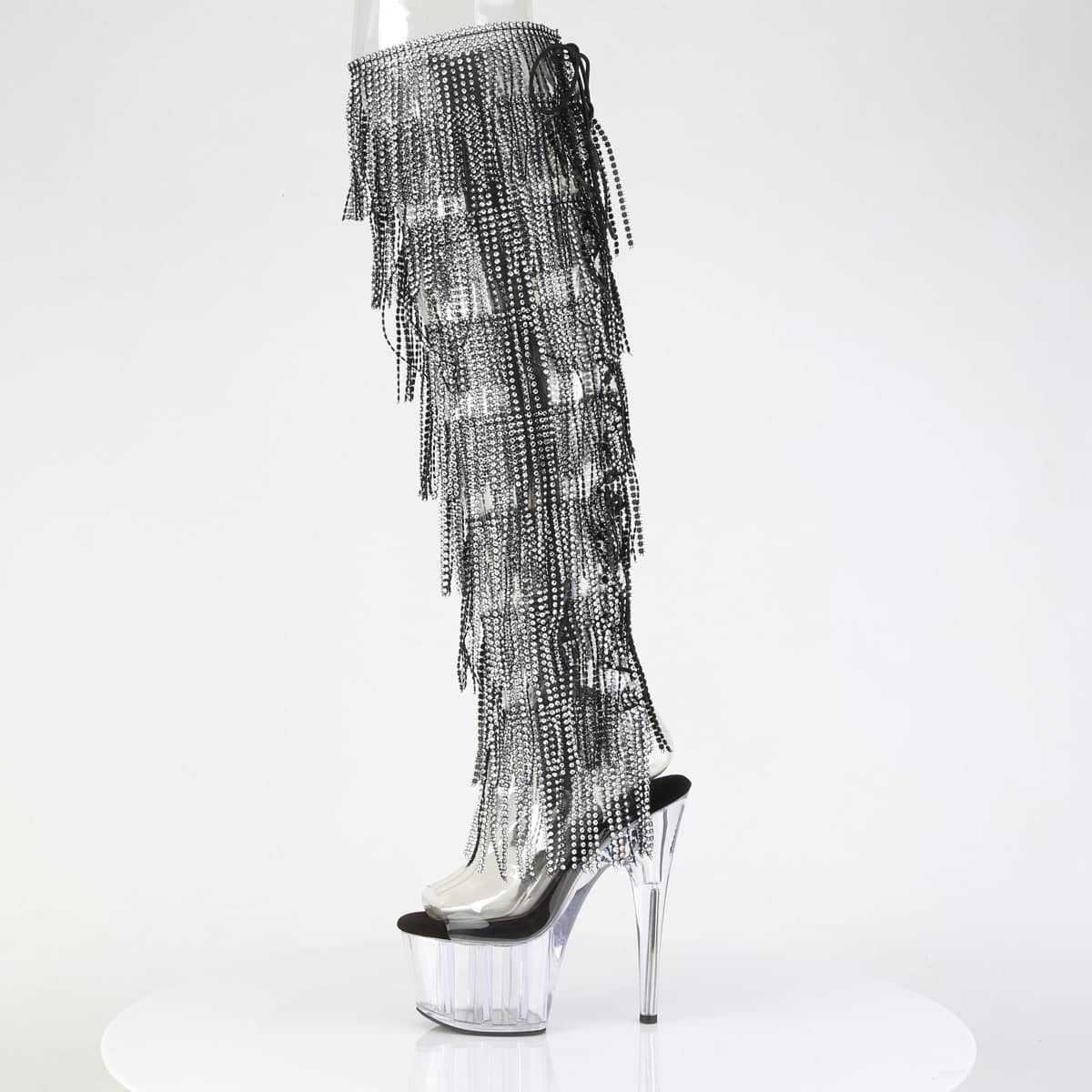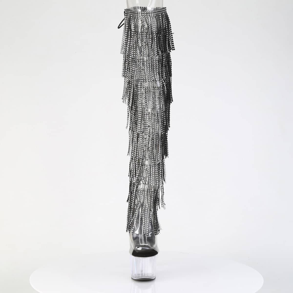 The Pleaser ADORE-3019C-RSF thigh high boots are a bold statement in the world of platform shoes. Their design adds an extra edge to the shoe, while still maintaining an air of class and sophistication. A shoe style that embodies embellished and fringe details, they’re the perfect blend of luxury and practicality.