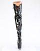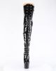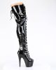 These eye-catching boots are available in UK sizes 2-9, ensuring a perfect fit for everyone. The boot’s patent material and black metallic style make it a versatile choice for a variety of outfits. Step out in style with the ADORE-3022 Lace-Up Front Thigh Boot by Pleaser.