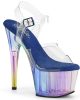 Indulge in these seductive, vegan-friendly ADORE-708HT sandals! With a 7″ heel and flirty 2 3/4″ platform, you’ll turn heads with the holographic tinted bottom. The clear ankle strap adds a touch of sexiness to any outfit.