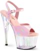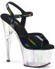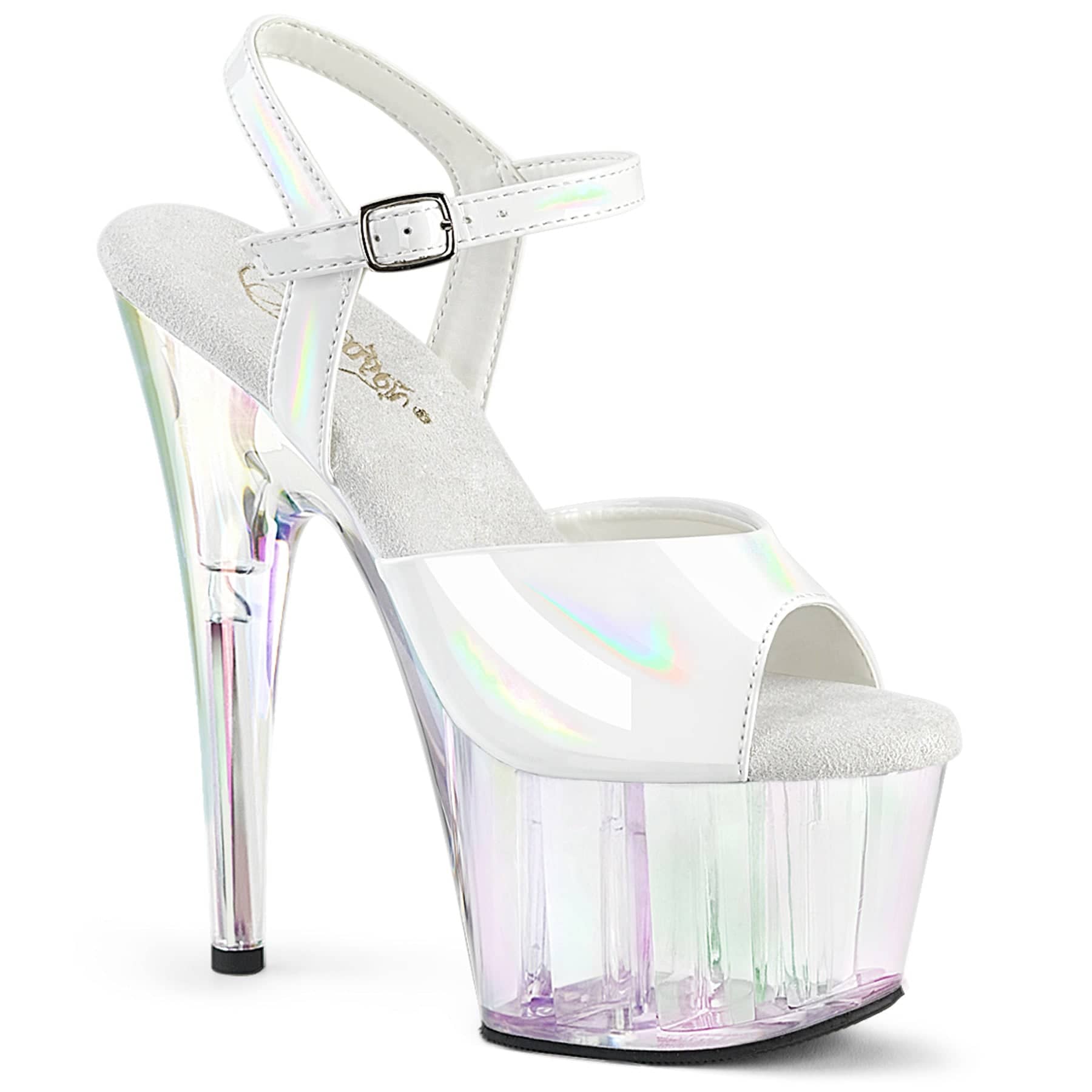 Get ready to turn heads in the ADORE-709HT Sexy Shoes! These flirty vegan ankle strap sandals feature a holographic tinted platform bottom, adding some extra oomph to your stride. With a towering 7″ heel and 2 3/4″ platform, you’ll feel like a true vixen in these Black/Multi Colour stunners.