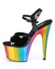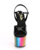 Unleash your inner goddess with the ADORE-709RC Vegan Sandals. These black, multi-colored stunners feature a sexy 7″ heel and a flirty 2 3/4″ chrome plated ankle strap. The rainbow bottom adds a pop of color to your look, while the vegan materials let you strut with confidence. Get ready to turn heads and break hearts in these sexy shoes.