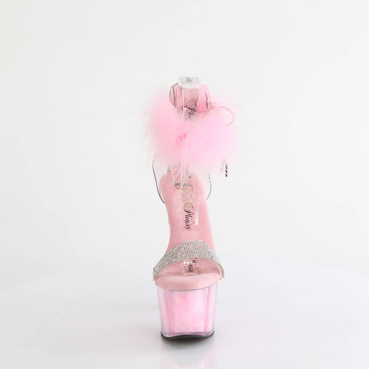 The ADORE-727F Fur Ankle Cuff Sandal showcases Pleaser’s exceptional craftsmanship with its elegant 7″ Heel and a sturdy 2 3/4″ PF Fur Ankle Cuff Sandal. It comes in an eye-candy ombre design that varies from Pink to Clear. It’s a gracefully fluffy and embellished sandal, making it both a showstopper and a fashion essential.