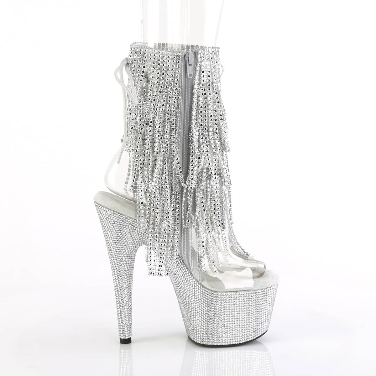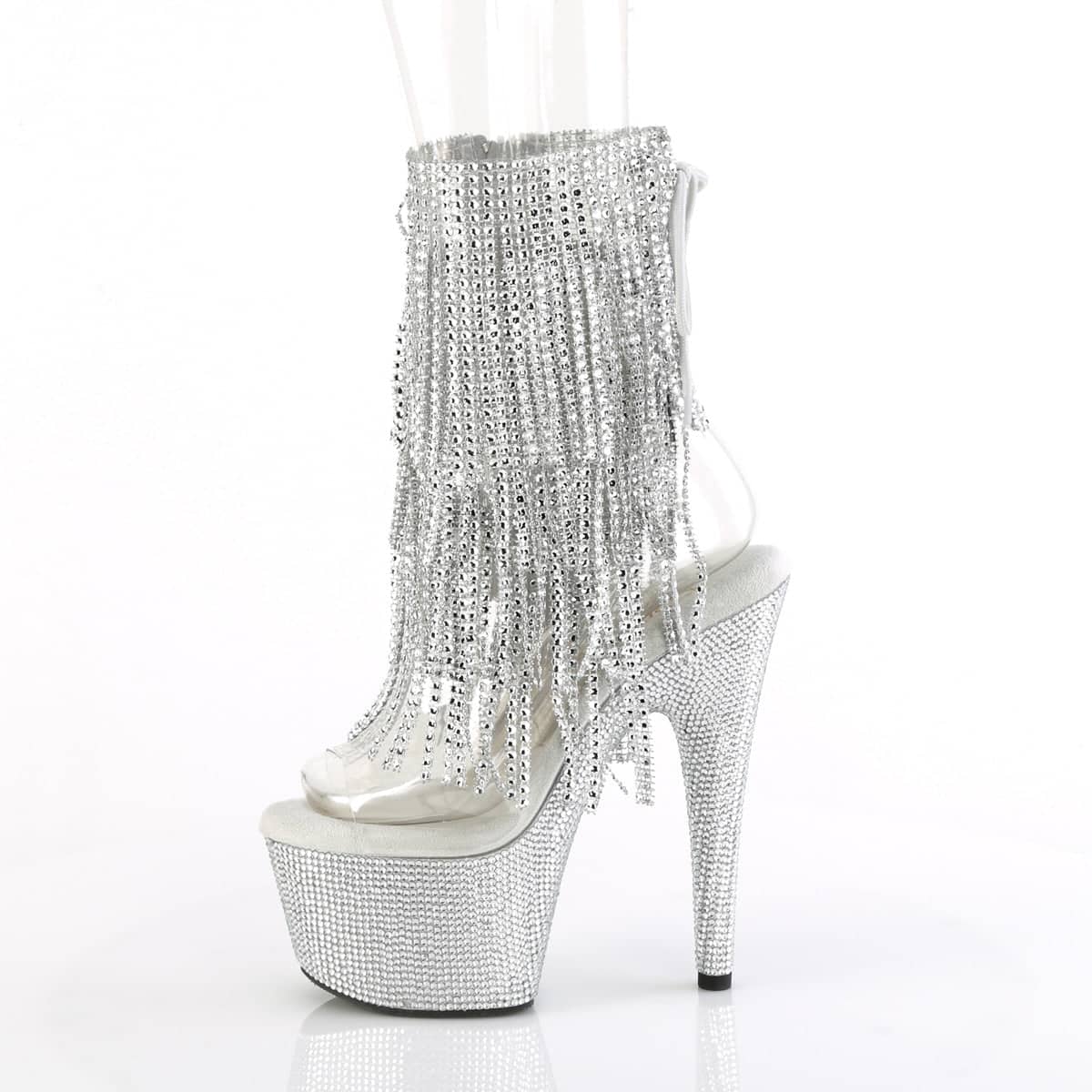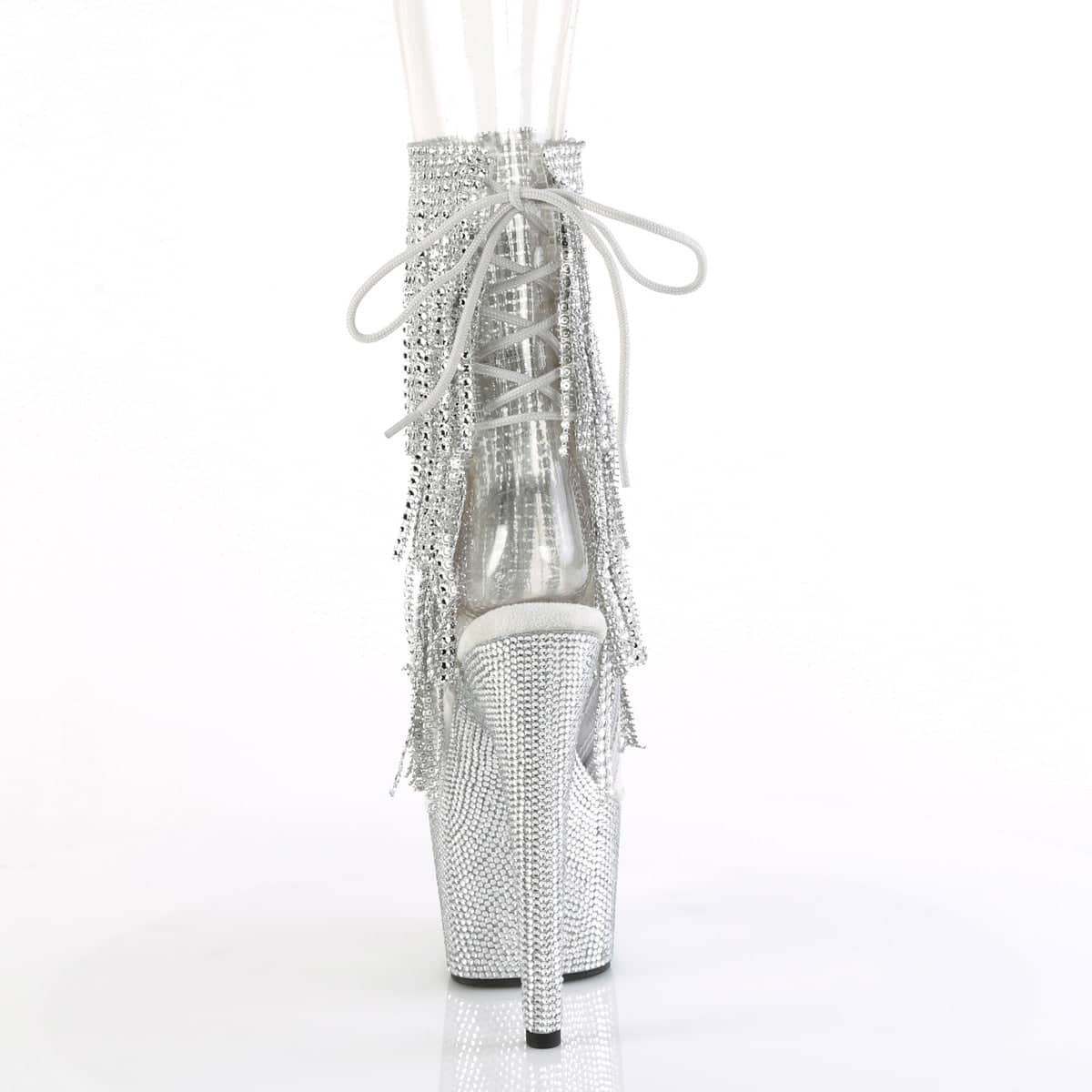 Step up your shoe game with the BEJEWELED-1017RSF Silver Sequin Ankle Boots by Pleaser Shoes.