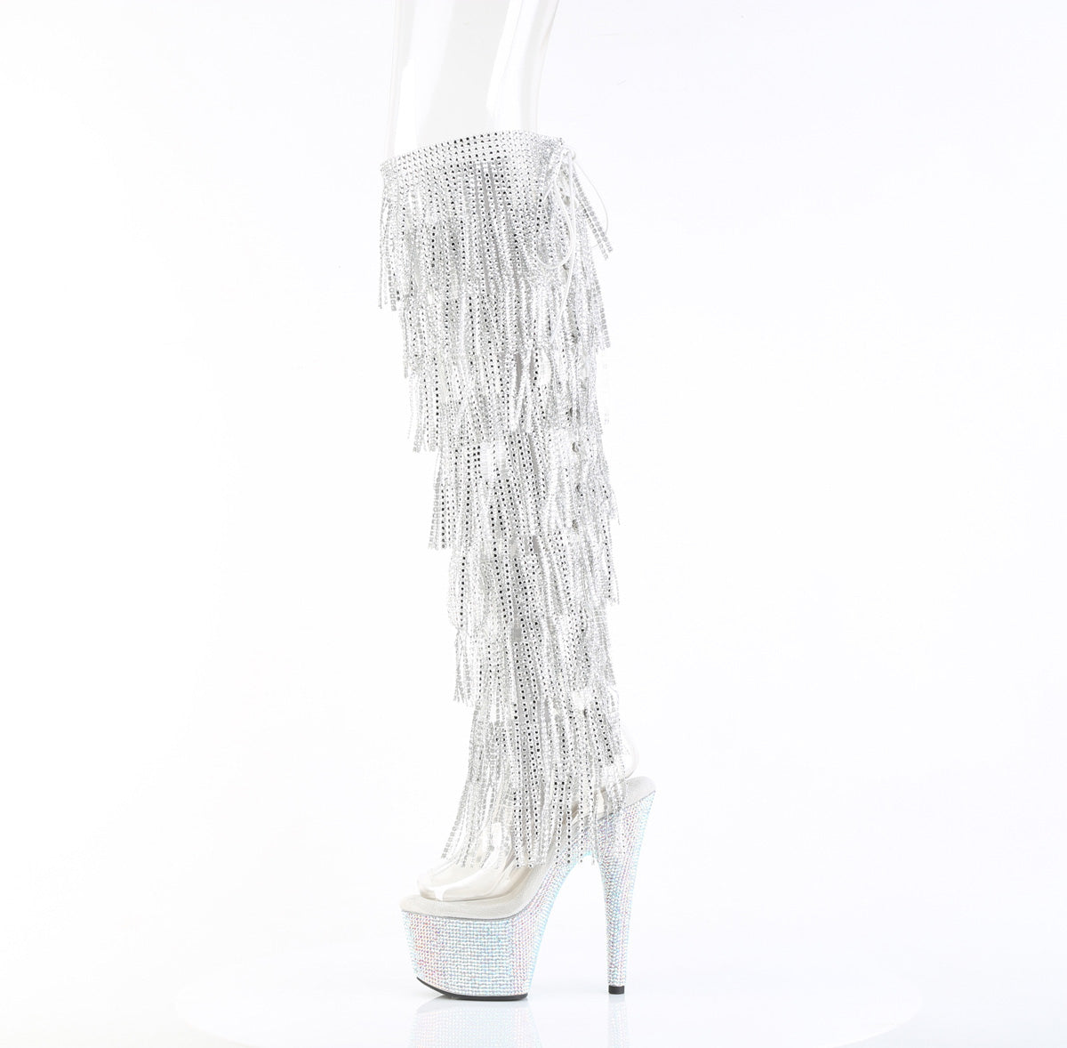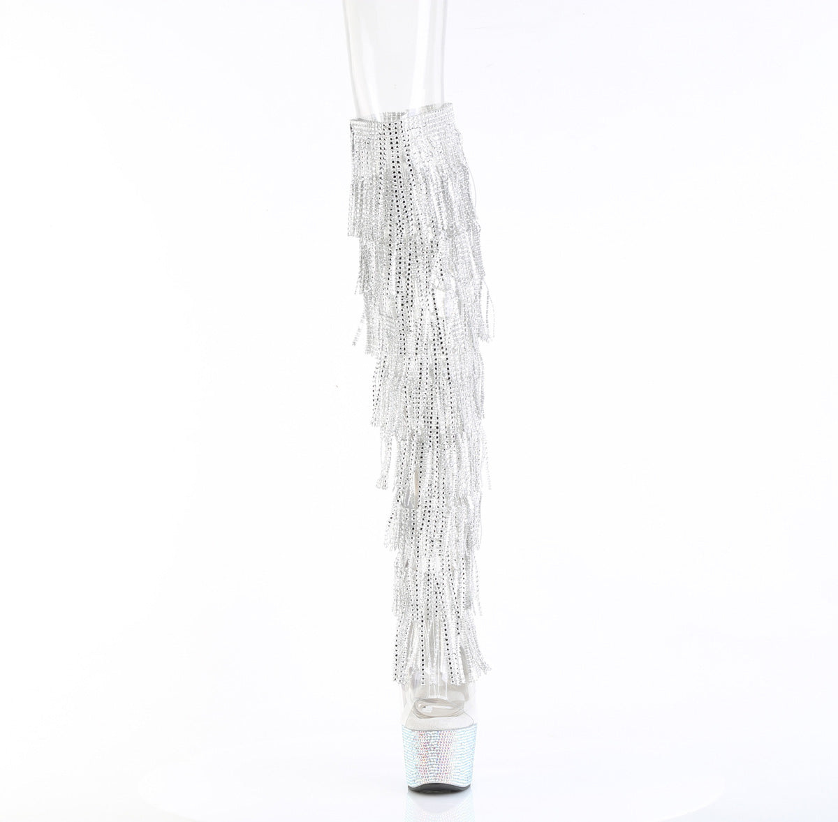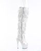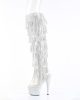 Embrace your high style quotient with these eye-catching silver boots. As part of Pleaser’s renowned platform shoes and thigh high boots collections, these shoes are a magnet for compliments and second glances. Step out in style, upscale your wardrobe, and let your feet do the talking with the BEJEWELED-3019C-RSF Fringe Over-The-Knee Boot.