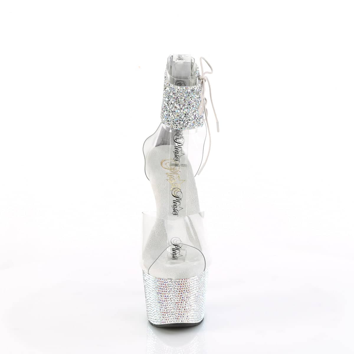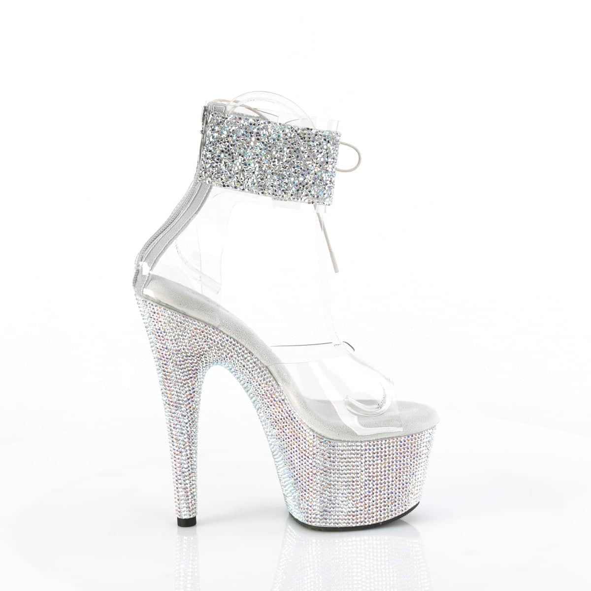 Get your sexy on with BEJEWELED-724RS vegan shoes in Clear/Silver! With shimmering Multi RS and Slv AB RS accents, these flirty heels will add a touch of glam to any outfit. Step out in style with the BEJEWELED-724RS-02.