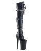 10 (25.4cm) Heel, 6 1/4 (15.9cm) Platform Lace-Up Thigh Boot with Straps & Belt Buckle Detail Full Inner Side Zipper Warning: Extreme High Heels. Not Recommended for Walking or Dancing.