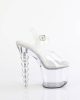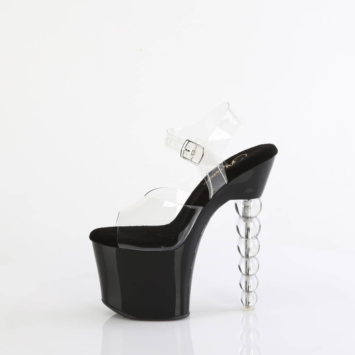 Get ready to turn heads with our BLISS-708 vegan clear and black ankle strap sandals. With a 7″ bead heel and 3 1/4″ platform, these sexy shoes are perfect for a night out. Show off your flirty side and feel great knowing you’re doing it ethically.