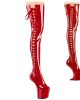 Defy gravity and turn heads with these daring 8″ heelless, 3″ platform thigh-high boots featuring side ribbon lace and a side zip closure. The avant-garde design creates a unique silhouette that showcases your bold style and fearless fashion sense. The side ribbon lace adds a touch of elegance while ensuring a snug fit, and the side zip closure allows for easy on/off. Make a statement at any event and leave a lasting impression with these extraordinary heelless thigh-high boots.