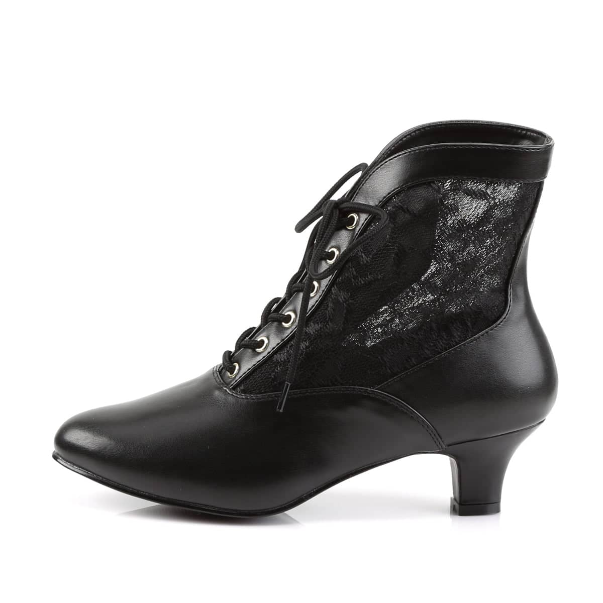 Get ready to strut your stuff in our vegan-friendly Black Lace-Up DAME-05 ankle boots! With a seductive 2″ heel and intricate Victorian lace design, these sexy shoes will have heads turning wherever you go. Say bye-bye to zippers with this no-closure style code – perfect for effortlessly flirty style.
