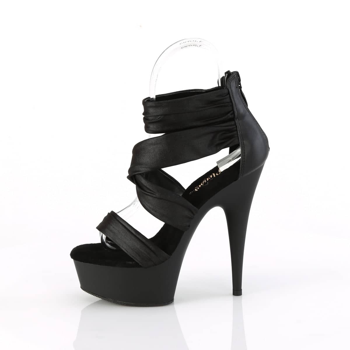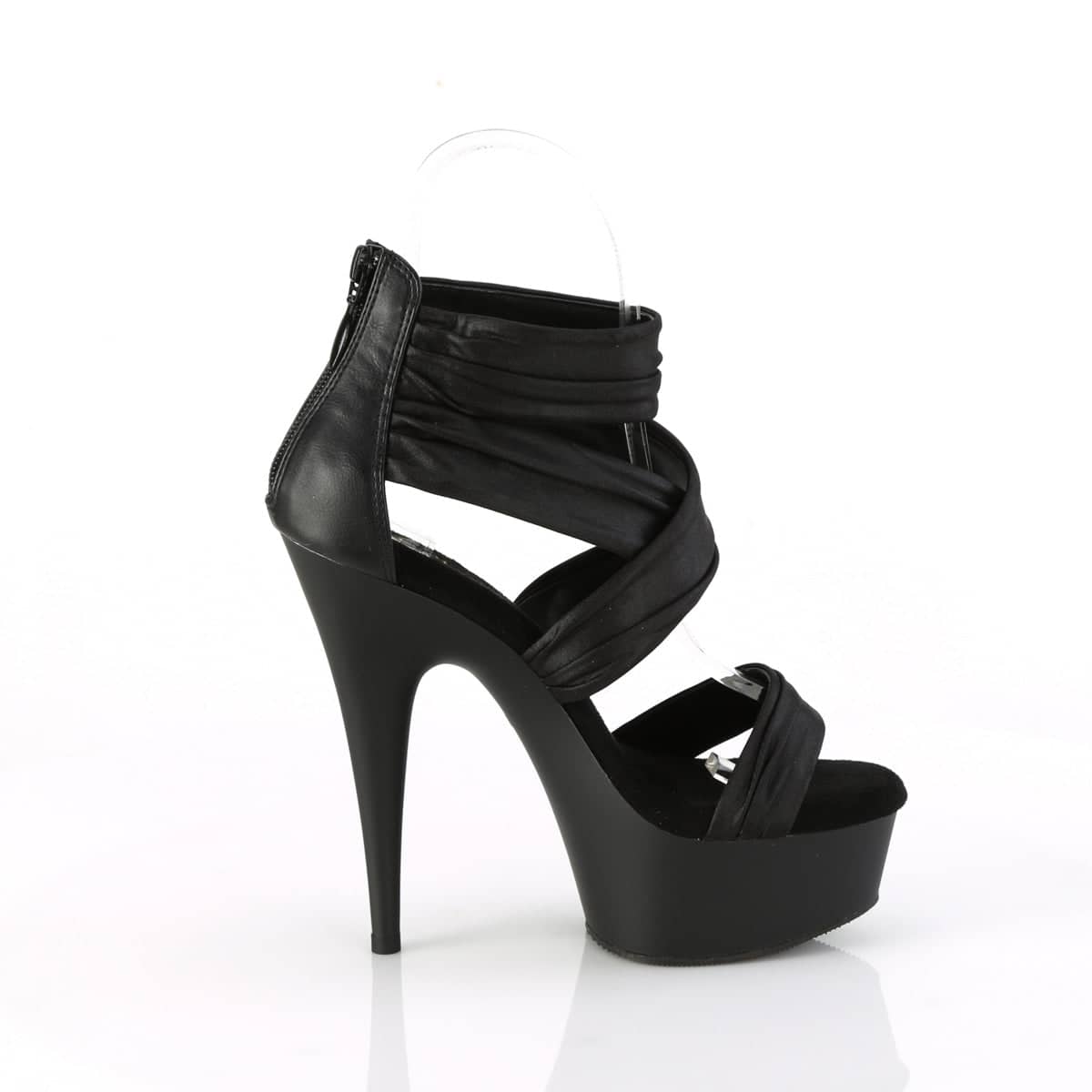 The DELIGHT-620 sandal features a daring 6″ heel and a 1 3/4″ platform, placing you head and shoulders above the rest. The ruched ankle strap guarantees a secure, comfortable fit while the back zip design adds an easy on-off convenience.