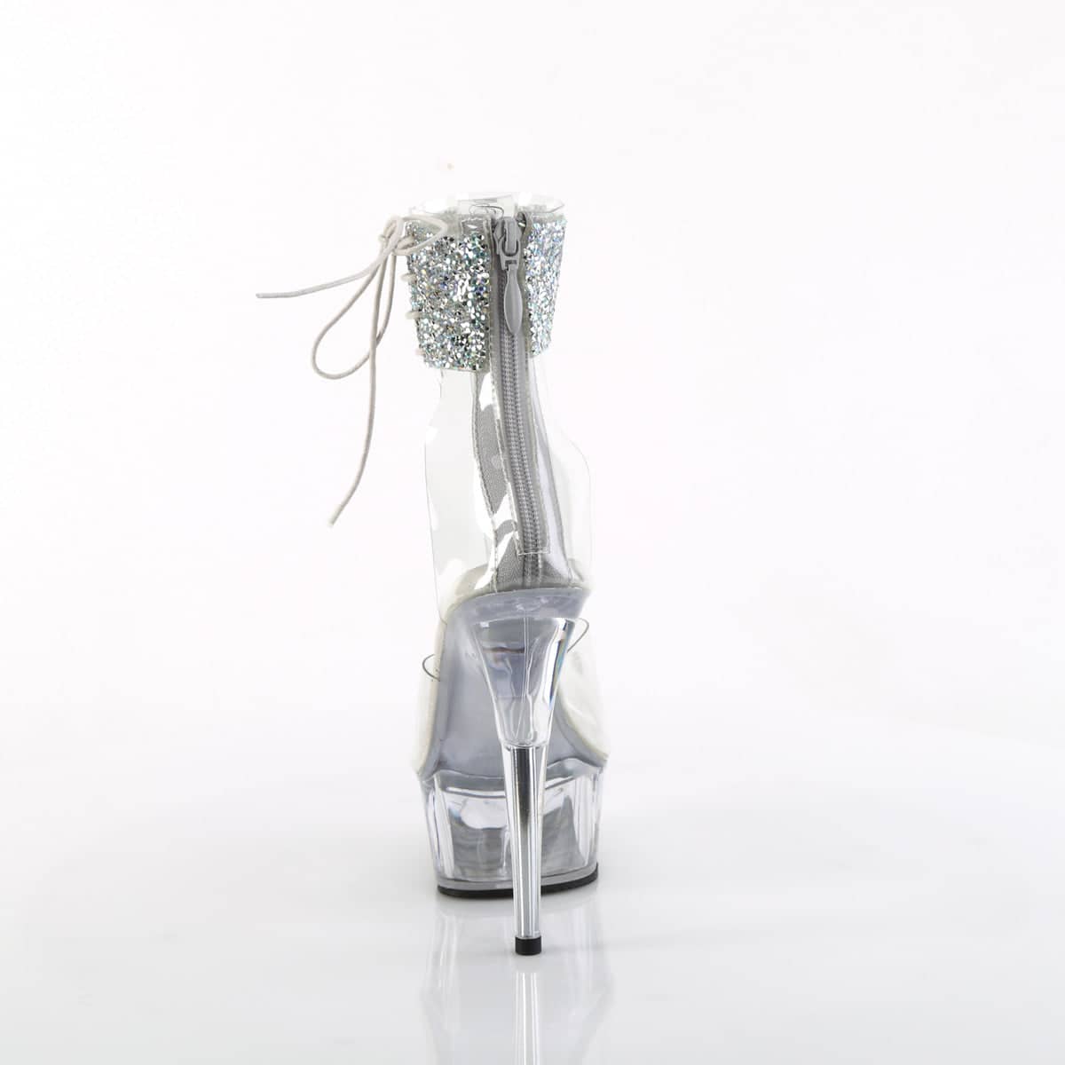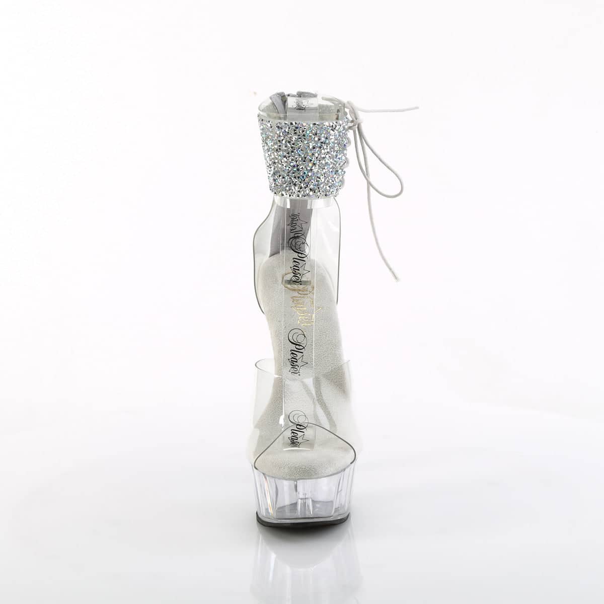 The perfect blend of comfort, stylish design and height, the DELIGHT-624RS-02 Ankle Cuff Sandal stands tall with a platform height of 1 and a heel height of 6 inches. Dominate any event with this sandal and its clear and silver color variants.