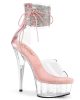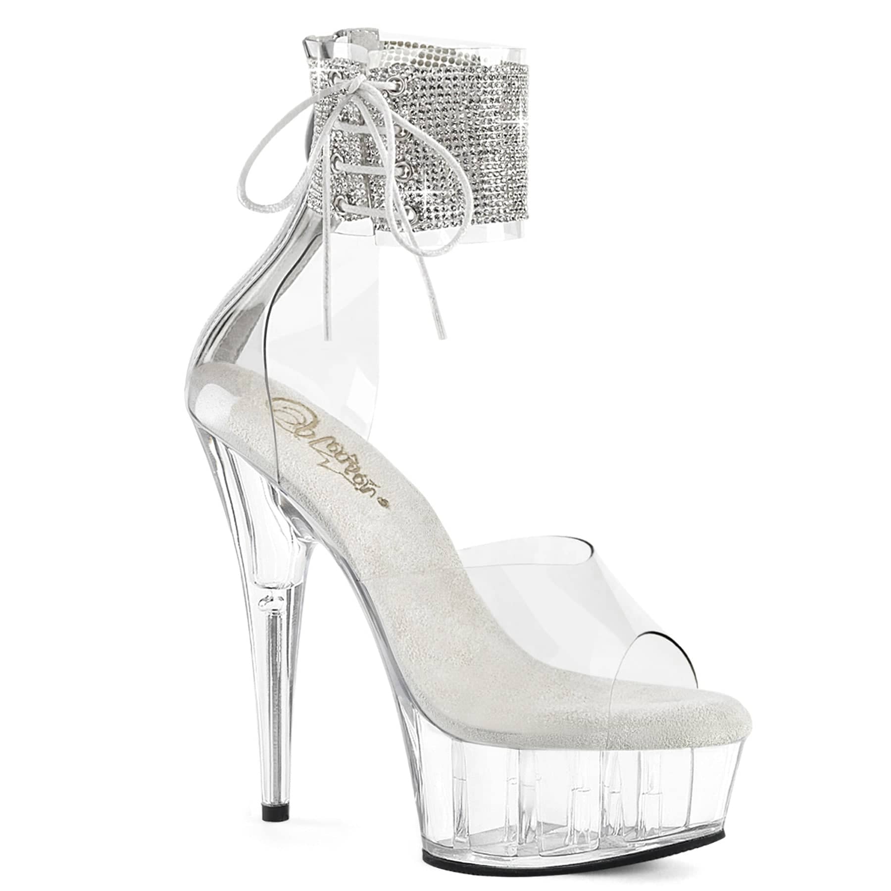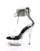 Step into the spotlight with these stunning Clear Black 6″ heel rhinestone embellished ankle cuff sandals. Featuring a 1 3/4″ platform, side lacing, and back zip closure, they’re perfect for special occasions and nights out.