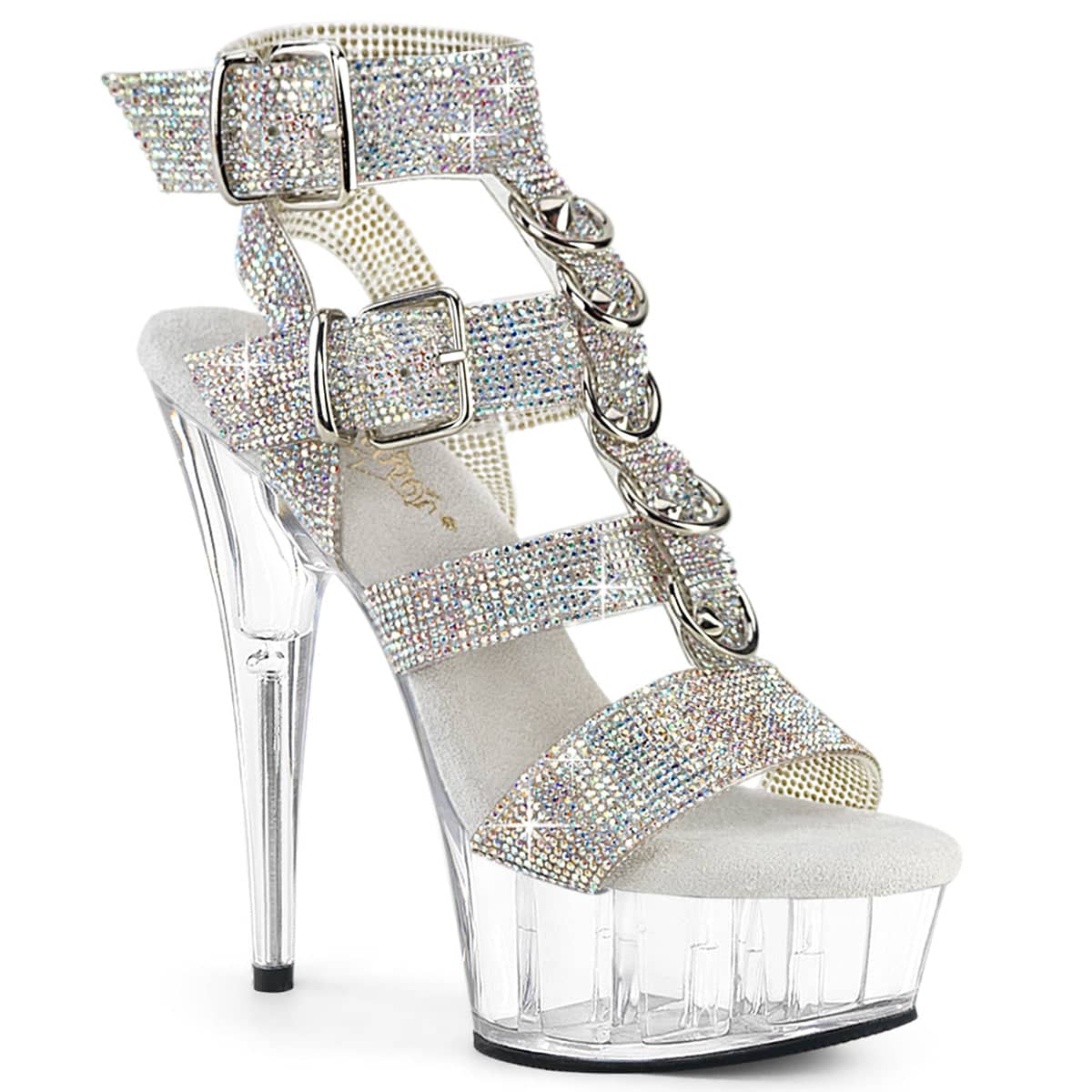 These high heel, platform shoes come in two appealing colours – pristine clear and classy silver. Available in UK sizes 2 to 9, so you won’t have a problem finding the perfect fit for you. Get ready to twinkle all day and all night with these shining, shimmering beauties that live up to their Pleaser style code, DELIGHT-656RS.
