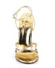 Feminine gold 6 inch heel sandals with three bounded straps with knot decoration in the middle and two side straps wrapped around the ankle and fastened with a metallic buckle on one side. The dazzling fetish style 6 inch (15 cm) stiletto heel complete this sexy look that turns heads. These Pleaser heels are not to be missed!