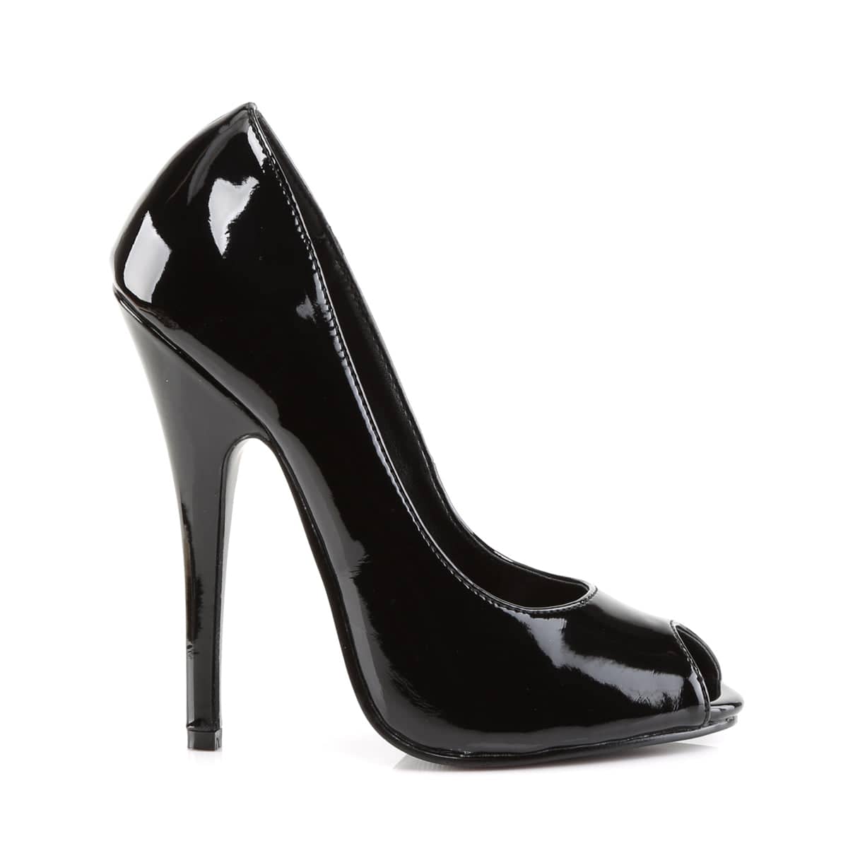 Domina 212 Black Patent 6 Inch Peep Toe Heels by Devious, Pleaser Shoes