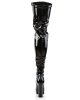 Introducing ELECTRA-3000Z Vegan Stretch Thigh High Boots- perfect for unleashing your sultry side. With a fierce 5″ stiletto heel and a 1 1/2″ platform, electrify your look in these black vegan beauties. Slip into pure decadence with full-length inner side zip closure.