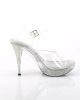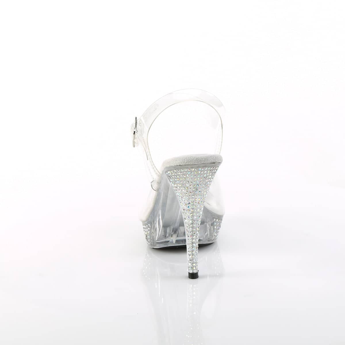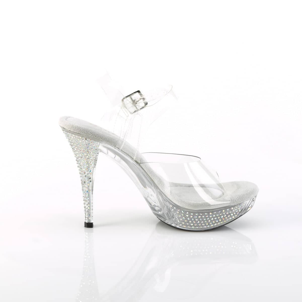 The ELEGANT-408ABRS Ankle Strap Sandal features a transparent silhouette adorned with dazzling rhinestone embellishments. The clear colour choice only accentuates the overall allure providing a modern yet sophisticated look.