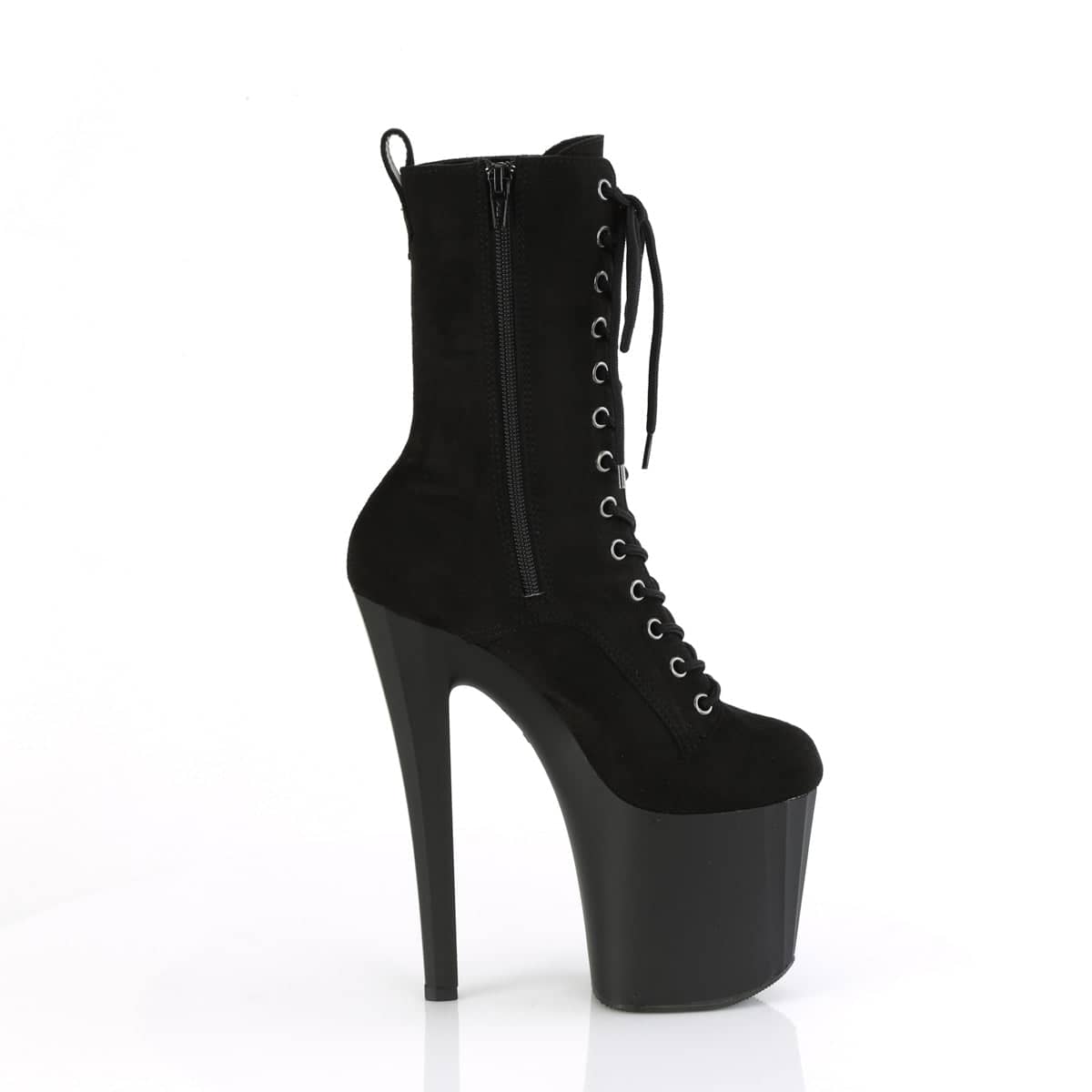 Introducing ENCHANT-1040, the hottest vegan Black Lace-Up Mid Calf Boots with an 8-inch heel and sexy 3 3/4-inch platform! Zip up and step out in style with these flirty and cruelty-free boots. Make a statement at any event in these sleek and sexy shoes.