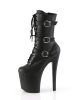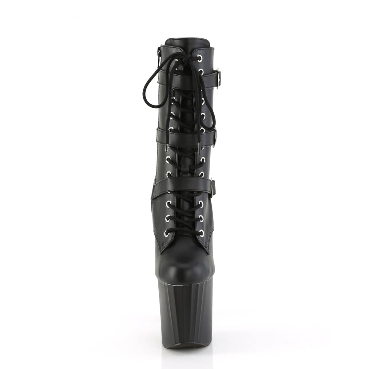 ENCHANT-1043 Vegan Black Faux Leather Ankle Boots are perfect for empowering your look. With an 8″ heel and 3 3/4″ platform, these sexy shoes will make heads turn. The buckled strap and side zip add extra flair to these flirty boots. Step up your game with ENCHANT-1043.