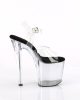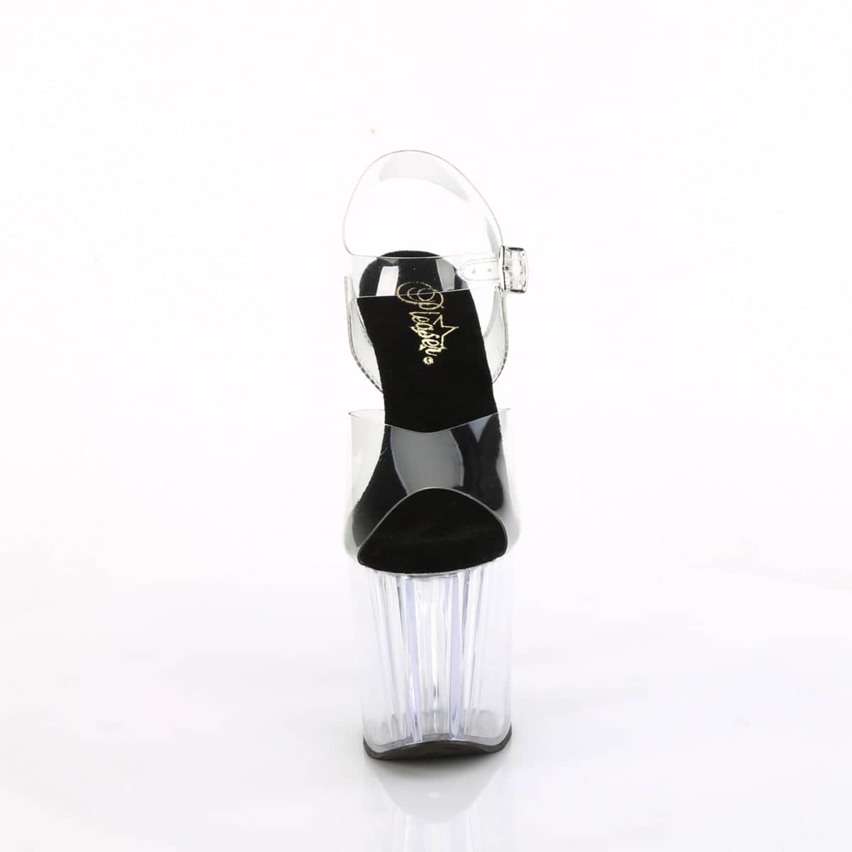 Step into the spotlight in our ENCHANT-708 clear and black 8″ heels, complete with a flirty 3 3/4″ ankle strap. These must-have sexy shoes are perfect for the vegan fashionista!