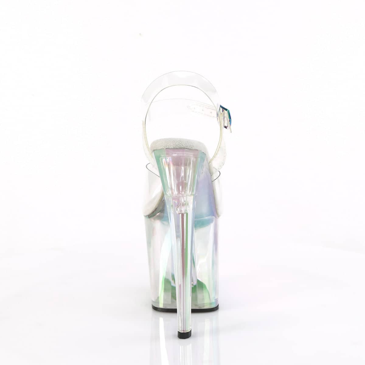 Get ready to turn heads with our ENCHANT-708HT clear vegan sandals. These sexy shoes feature a holographic tint and an ankle strap for an extra flirty touch. With an 8″ heel and 3 3/4″ platform, these shoes are perfect for a night out on the town. Make a statement with our stunning vegan sandals.