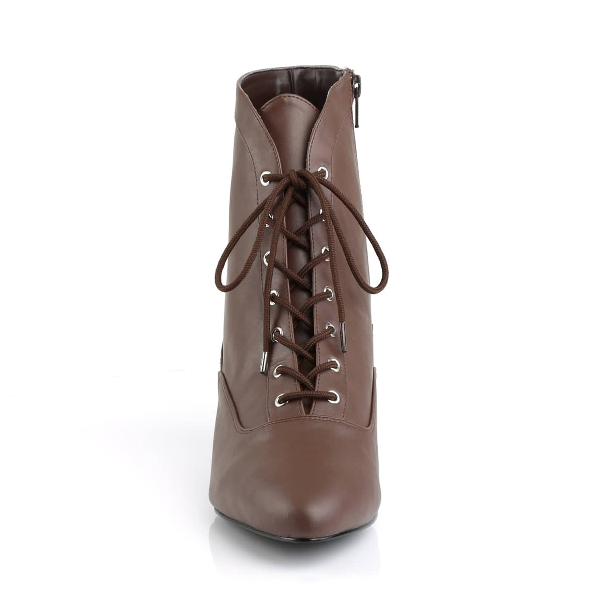 Step up your shoe game with these sexy vegan ankle boots! The FAB-1005 lace-up front and full-length inner side zip closure will have heads turning. With a 2″ heel, these brown beauties are perfect for any flirty, fun outfit.