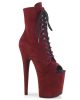 These hot as hell burgundy Pleaser 8 inch platform ankle boots are perfect for pole dancing and everyday wear. Perfect with your pole outfit, or with jeans! The faux suede is very on-trend right now and the peep toe is always flattering.