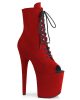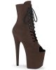 8 (200mm) Heel, 4 (100mm) Platform Open Toe Lace-Up Front Ankle Boot Featuring Fully Wrapped Platform Bottom, Inside Zip Closure