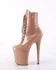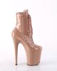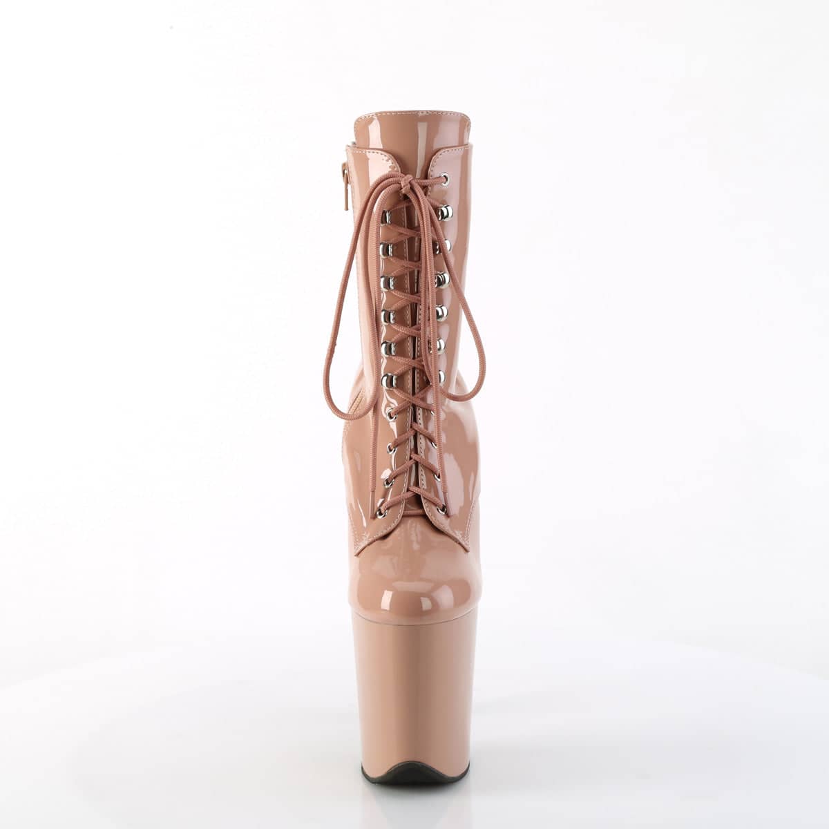 We fell in love with these platform boots at first blush. Towering at 8 inches tall with not-so-embarassing 4” platforms, these Flamingo ankle boots are drenched in blush coloured patent. Perfectly complimented with matching front laces and side zippers, we promise after lacing them on you’ll feel confident to strike any pose, pirouette or otherwise!