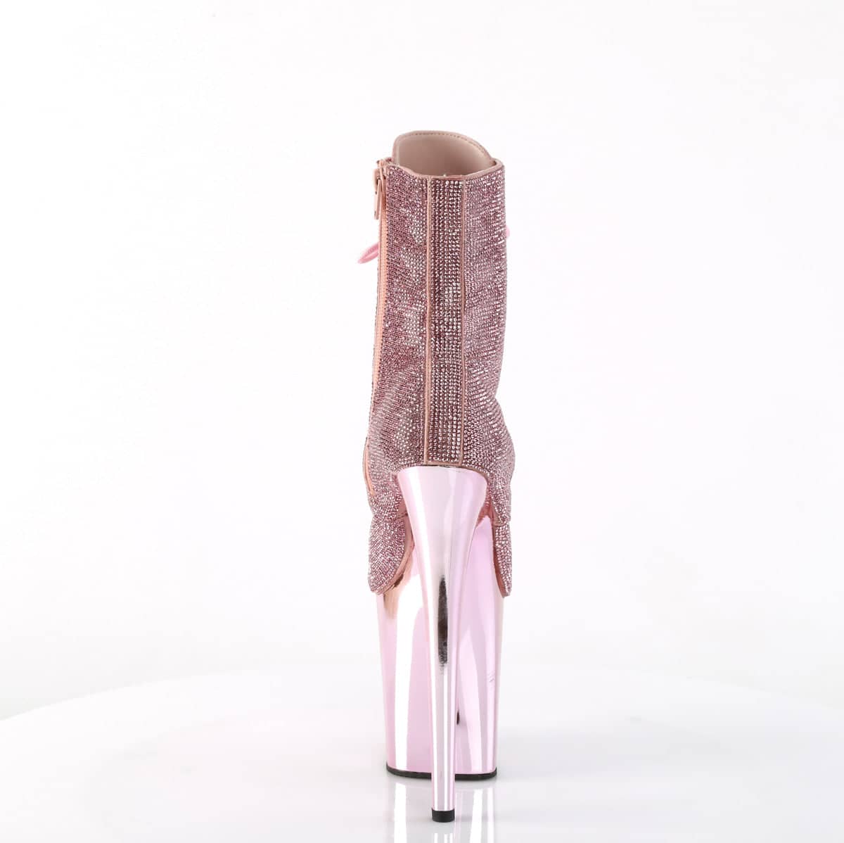 Step up your shoe game with FLAMINGO-1020CHRS! These vegan ankle boots are perfect for a night out! With an 8″ stiletto heel and 4″ platform, the pink lace-up design will make sure you stand out in the crowds. Embellished with rhinestones, and featuring a side zip for easy access. Get ready to turn heads and steal the show in our Sexy Shoes.