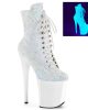 Get ready to turn heads in these Vegan Neon White Multi Glitter Ankle Boots! With a sky-high 8″ heel and sexy 4″ platform, these flirty lace-up beauties make a bold statement. Featuring a side zip for easy on/off access and a bright, multi-color design, you’ll be the center of attention wherever you go. Get ready to unleash your inner diva with style code FLAMINGO-1020 in Vegan-friendly materials.