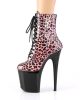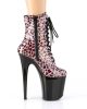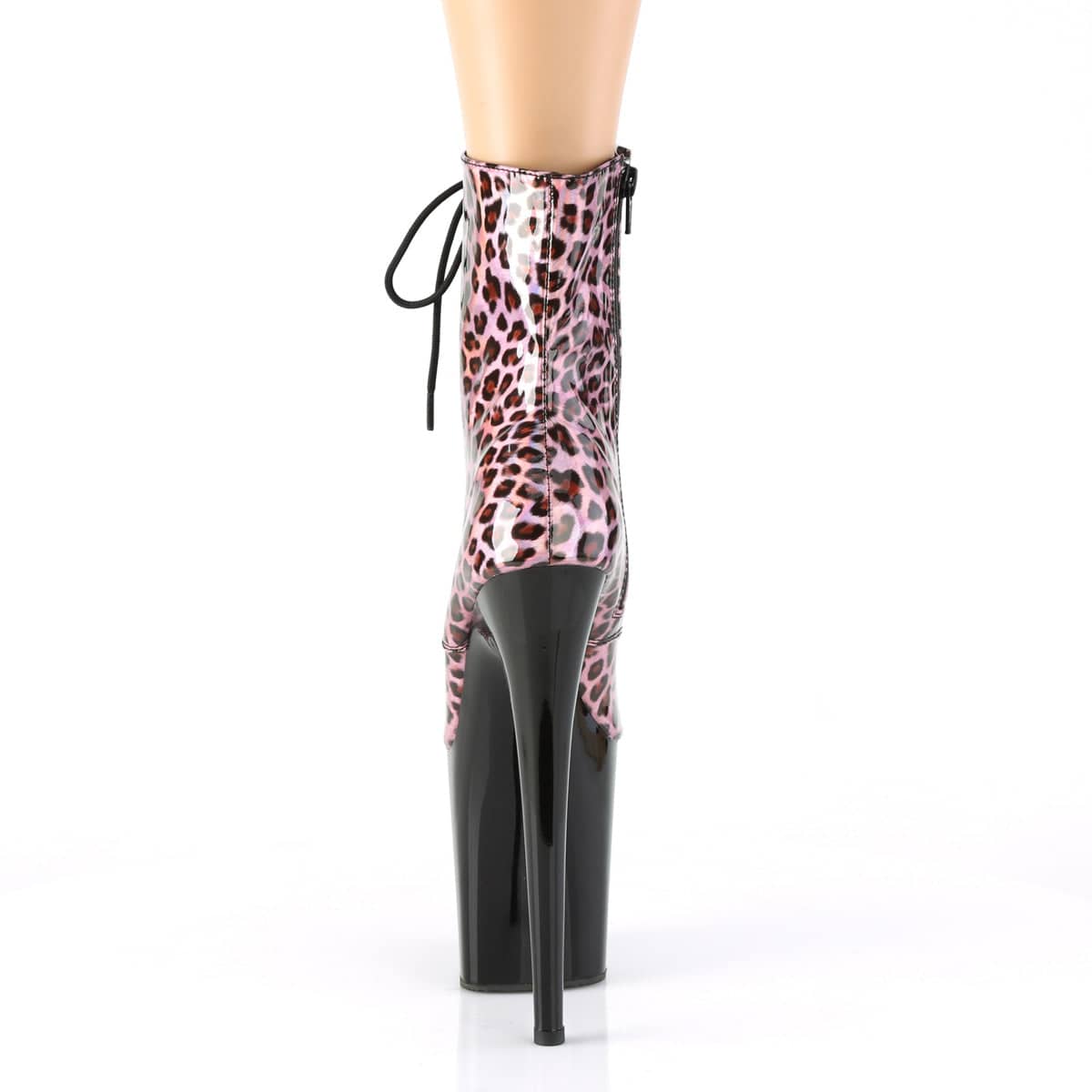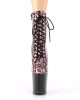 Step into the wild side with FLAMINGO-1020LP, the ultimate sexy vegan ankle boot! The 8″ heel and 4″ platform will elevate your look to new heights, while the holographic leopard print upper adds a flirty touch. Lace-up front and inner side zip closure make for a comfortable and secure fit. Available in sultry Pink and bold Black.