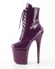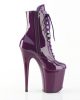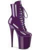 These boots showcase a high-fashion aesthetic while maintaining functionality. The FLAMINGO-1020 comes with a lace-up front and a convenient side zip, combining a sleek look with practical accessibility. These boots are covered in a glossy patent material in a striking purple shade, adding a touch of bold color to any outfit.