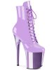 Step up your style with the unique and attention-grabbing FLAMINGO-1020 Purple Chrome Platform Ankle Boots by Pleaser, a renowned brand known for their trendy and top-quality fashion items.
