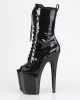 Step into a world of style and indulgence with the sleek yet daring FLAMINGO-1041GP Peep Toe Lace-Up Ankle Boot. Crafted by none other than the prestigious brand Pleaser, this boot is a stunner born to steal hearts.