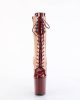 Designed by the renowned brand, Pleaser, this two-tone lace-up mid calf boot boasts of caliber craftsmanship and a keen eye for detail. It is complete with a side zip for easy wearability. The patent material exudes a sleek, polished finish, making for an eye-catching accessory that never goes unnoticed.